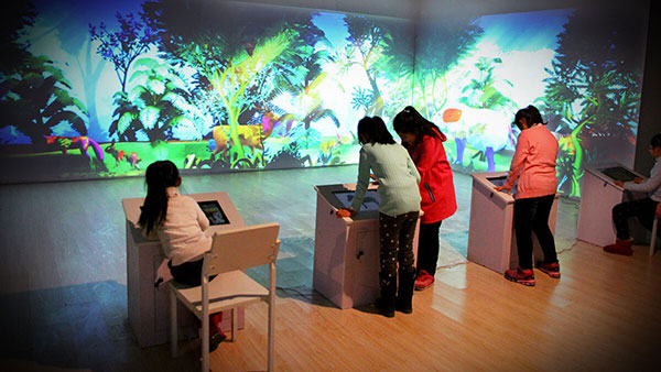 制作一面展示各種動植物的互動墻,讓孩子們通過觸摸屏幕來獲取關于生物的信息。